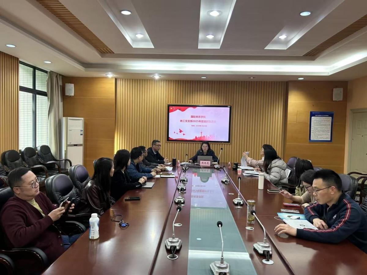 根据党章和《中国共产党支部工作条例(试行)》《中国共产党党员教育管理工作条例》等规定,按照《中共重庆市委组织部中共重庆市纪委机关关于开好2025年度县以上党和国家机关党员领导干部民主生活会的通知》(渝委组〔2025〕99号)要求,和《中共四川外国语大学委员会关于开好2025年度基层党支部组织生活会和开展民主评议党员的通知》要求,2026 年3月26日,国际关系学院教工党支部在歌乐楼A204会议室开展2025年度组织生活会和民主评议党员活动。活动由教工党支部书记周思邑主持,教工党支部全体党员参加,本次组织生活会由专职组织员包淑萍督导。