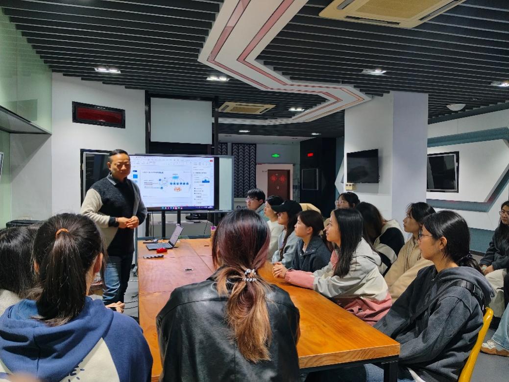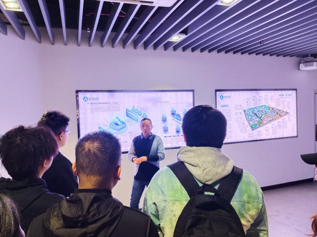 在技术分享环节,企业负责人王总以“APCOS信息计算系统的技术架构与应用场景”为主题展开深度讲解。通过动态演示与案例分析,详细介绍了该系统在数据整合、智能决策及跨场景适配等方面的核心优势。同学们围绕“系统算法逻辑”“数据安全保障”等问题与技术团队展开热烈讨论,现场气氛活跃。